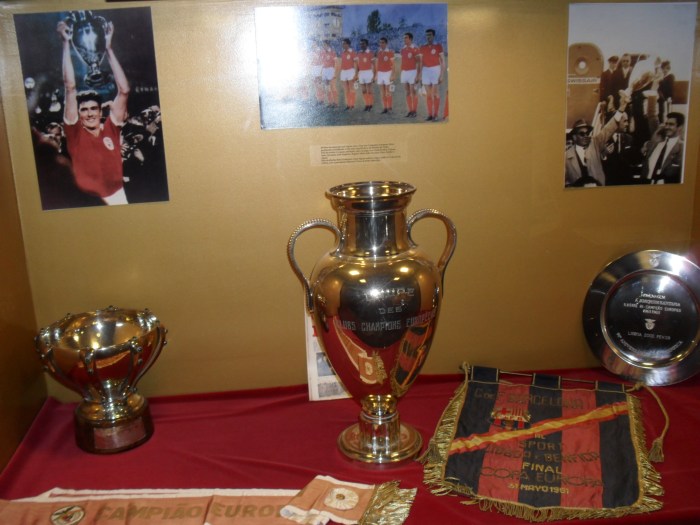 O clube encarnado ainda prepara o Museu do Benfica. Mas a visita inclui a exposição “Um Século de Futebol do Benfica”, uma galeria de relíquias, como bolas, históricas camisolas (uniformes), galhardetes (flâmulas), taças… O Glorioso SLB ganhou 32 ligas portuguesas e foi bicampeão europeu no começo dos anos 60 – um timaço treinado por Bela Guttman que tinha como grande destaque o moçambicano Eusébio, o Pantera Negra.