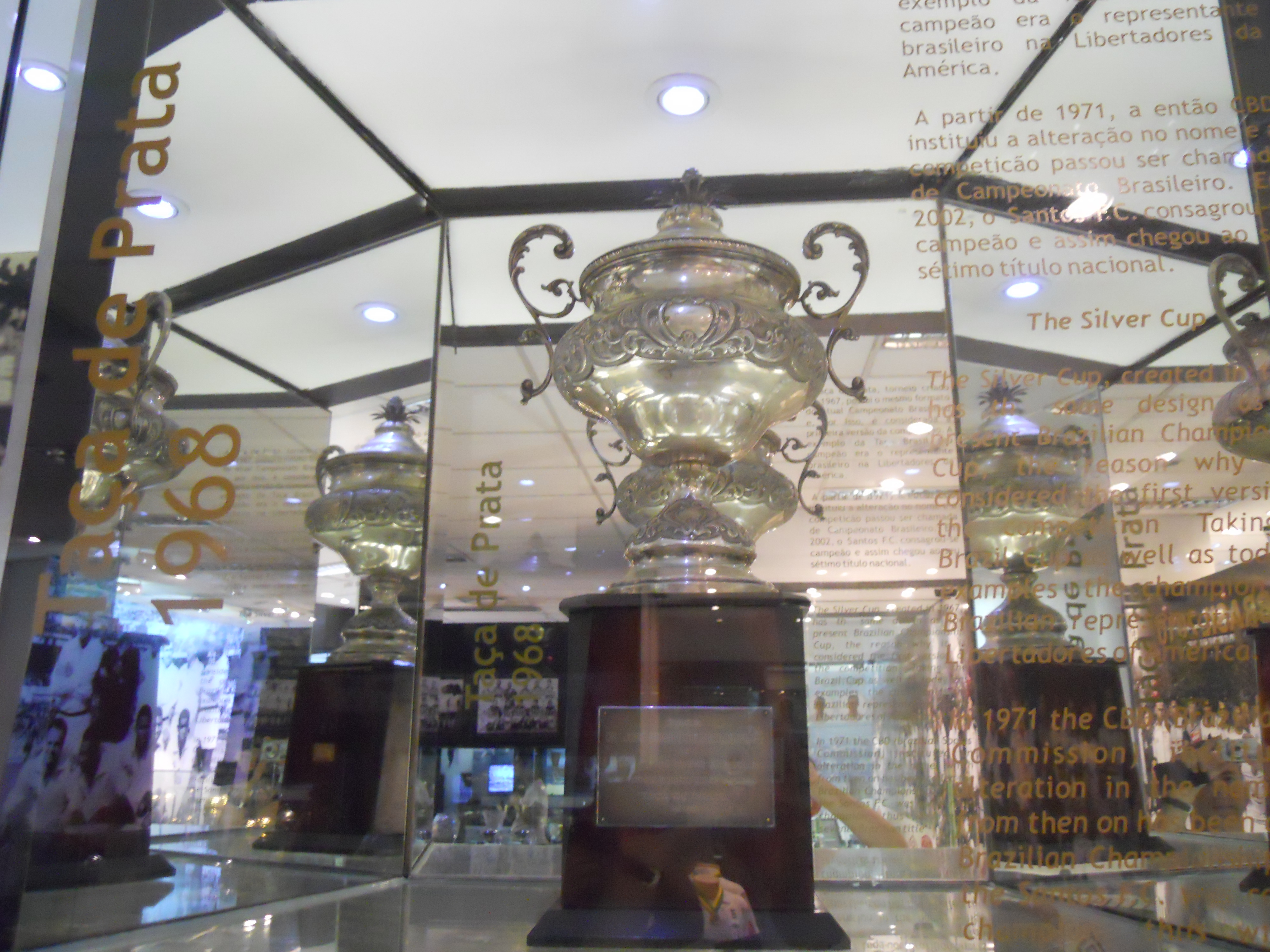 Outros títulos do escrete comandado por Pelé, como o pentacampeonato da Taça Brasil (1961-65) e a primeira Taça de Prata (Torneio Roberto Gomes Pedrosa), em 1968, também estão na galeria.
