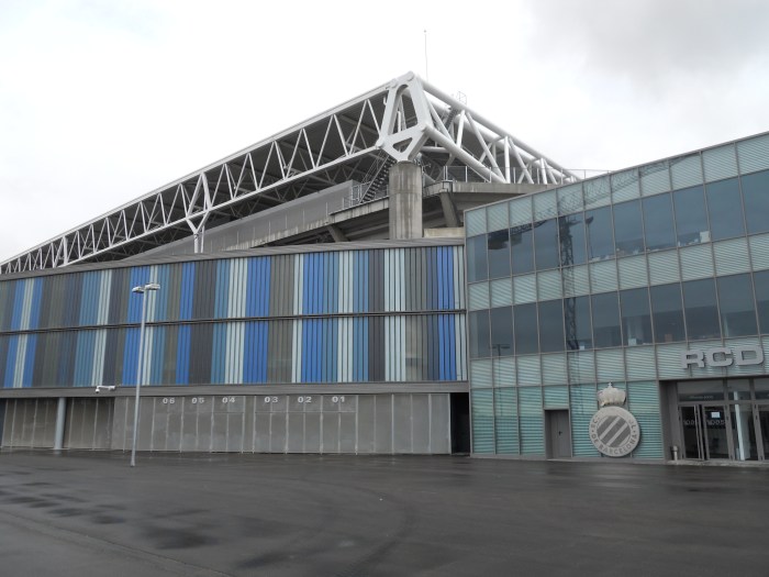 Com capacidade para 40.500 espectadores, o estádio considerado 4 estrelas custou 65 milhões de euros – como chama a atenção o Blog de Carlos Lima, no site da ESPN – e está localizado exatamente entre os municípios de Cornellà, terra da excelente banda Estopa, e El Prat de Llobregat, onde fica o aeroporto de Barcelona. Daí o nome do estádio (ainda provisório, acredito eu). Para batizar a moderna arena, chegaram a ser cogitados os nomes do jogador Dani Jarque, capitão dos pericos que morreu na concentração pouco antes da abertura do novo campo, e Nuevo Sarrià – sim, era do Espanyol o local da derrota do Brasil para a Itália na Copa de 82, a chamada tragédia do Sarrià. Entre a demolição do Sarrià e a inauguração do Cornellà-El Prat, o Espanyol mandou seus jogos no estádio Olímpico de Montjuic, que é de 1929 e foi reformado para as Olimpíadas de 1992.