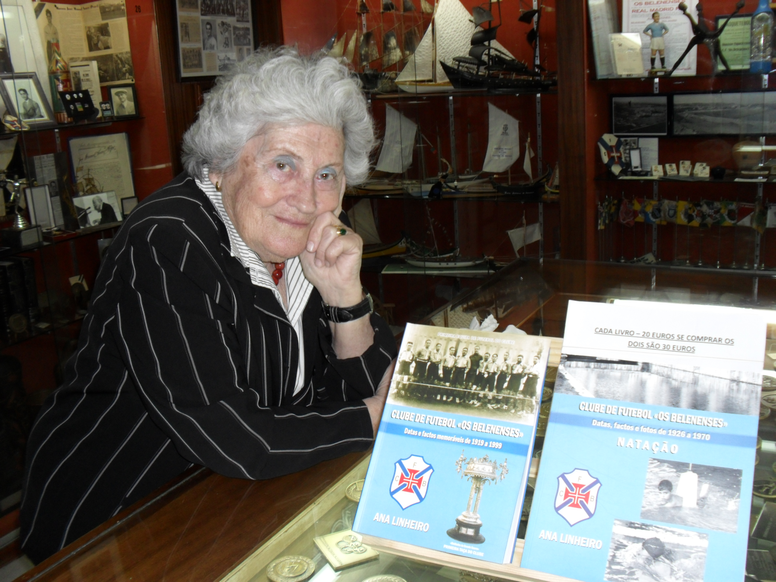 No bem cuidado museu que preserva a história dos Azuis do Restelo, fui muito bem recebido por Ana Linheiro, ex-atleta da natação dos Belenenses. Ana Linheiro aparece na foto ao lado junto com seus livros, sobre a história do clube. Aliás, não é só futebol. Os Belenenses têm uma área poliesportiva muito bacana, com ginásios, piscinas, quadras… De dar inveja a muito time grande brasileiro.