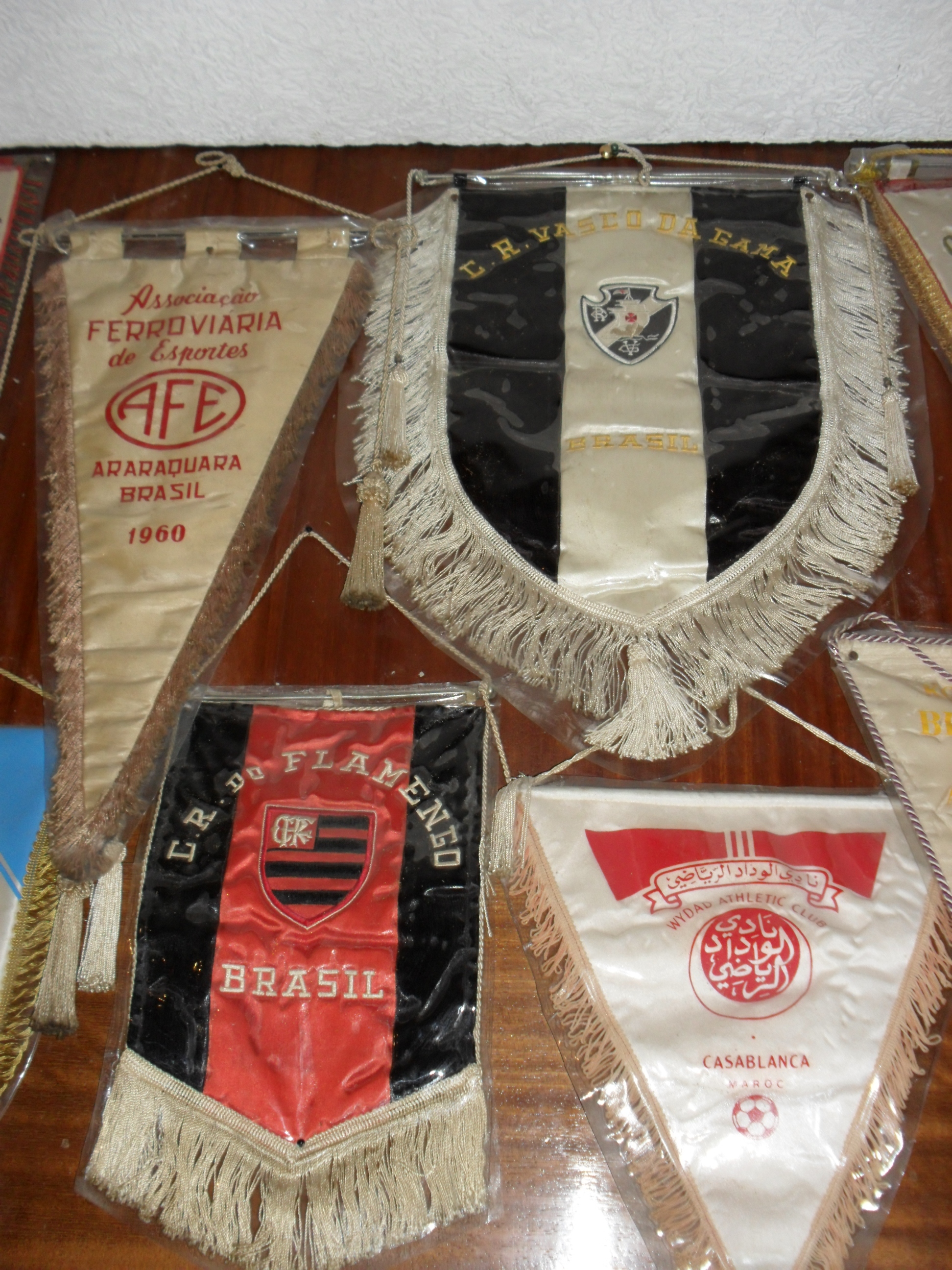 Os Belenenses já foram uma das grandes equipas do futebol português, mas caíram na época passada. E não estão nada bem na segunda liga, a segunda divisão portuguesa (no momento em que escrevo o post, ocupam o último lugar; uma pena). Mas na sala de troféus do museu dos Belenenses estão as conquistas dos azuis, como 3 Campeonatos de Portugal, o Campeonato Português da época 1945/46 e 3 Taças de Portugal. E entre os galhardetes – as flâmulas – muitos de times brasileiros. São Paulo, Ferroviária, Vasco, Flamengo…