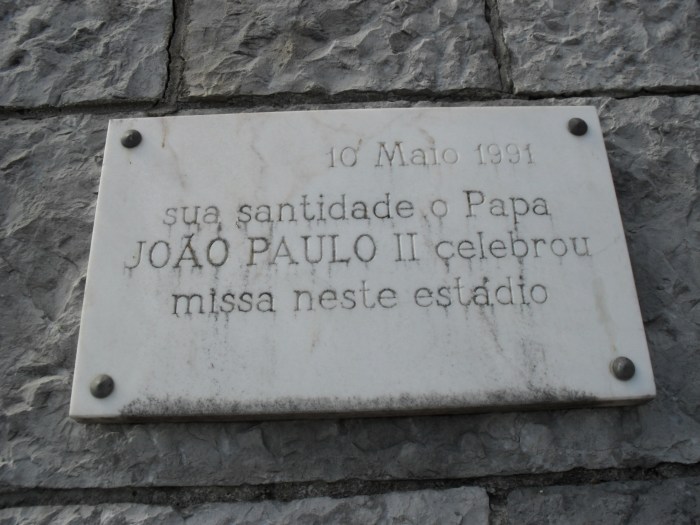 O nome vem do bairro lisboeta onde o clube foi fundado: Belém, o mesmo dos tentadores pastéizinhos. E o estádio – que me lembrou um pouco o velho Palestra Itália, do Palmeiras, antes da demolição, claro, mas com pista de atletismo na mesma cor da do Engenhão – está muito bem localizado, pertíssimo do Mosteiro dos Jerônimos e da Torre de Belém, com vista para o rio Tejo e Ponte 25 de Abril. Saca só as fotos abaixo.