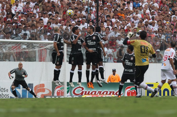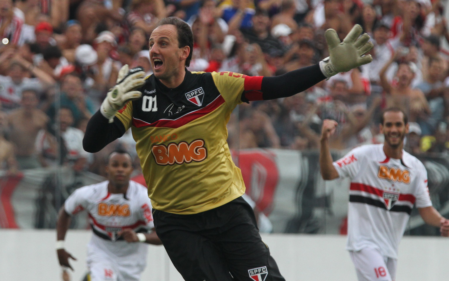 Espero que este não tenha sido o último gol de falta de Rogério. Depois, ele só marcou de pênalti. Confira a sequência dentro do post. A primeira foto virou até figurinha de álbum!