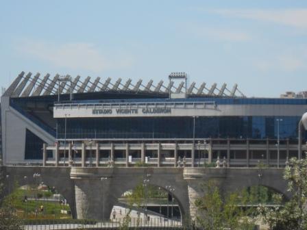 O curioso é que uma autopista madrilenha, a M-30, uma espécie de via marginal, passa embaixo de uma das arquibancadas. Tentei mostrar isso na foto seguinte.