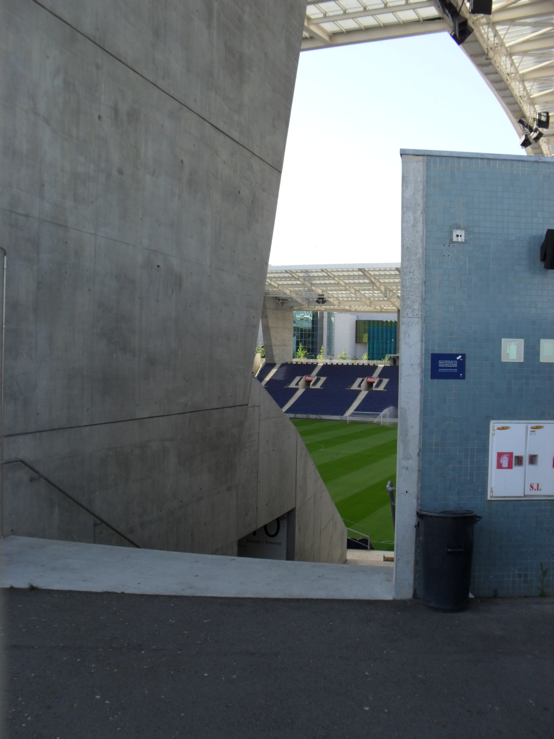 … aos corredores internos do estádio, onde dá pra ver o “autocarro” portista.