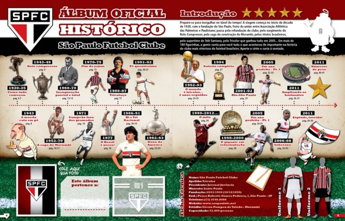 Bacana a ideia do marketing do São Paulo, revisada pelo arquivo histórico do clube. A partir de sexta-feira, o torcedor / colecionador poderá comprar pacotinhos com cromos de ídolos recentes, como Raí e Rogério, e de craques que ajudaram a formar a galeria de títulos do Morumbi: Leônidas, Canhoteiro, Roberto Dias, Gerson, Pablo Forlán, Pedro Rocha, Waldir Peres, Serginho Chulapa, Dario Pereyra e Oscar, Careca etc etc etc. E claro, técnicos vencedores como Muricy Ramalho e Telê Santana.
