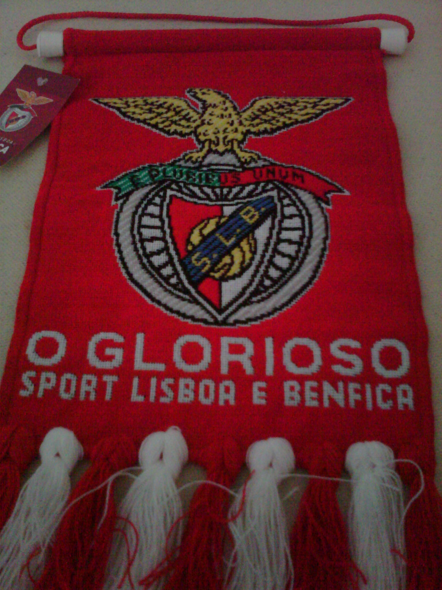 Galhardete (flâmula) do Benfica, que comemora 108 anos. Em 28 de fevereiro de 1904, nasceu o Sport Lisboa, que ao se unir com o Grupo Sport Benfica (de 26/07/1906) deu origem ao Sport Lisboa e Benfica. O “glorioso SLB” que os adeptos encarnados cantam, dentro e fora da “catedral”, o magnífico estádio da Luz.