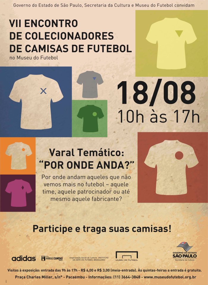 Por falar em uniformes, o 7º Encontro de Colecionadores de Camisas de Futebol rola em 18 de agosto, um sábado, a partir de 10h da manhã, no Museu do Futebol. Continuar lendo “7º Encontro de Colecionadores de Camisas de Futebol”