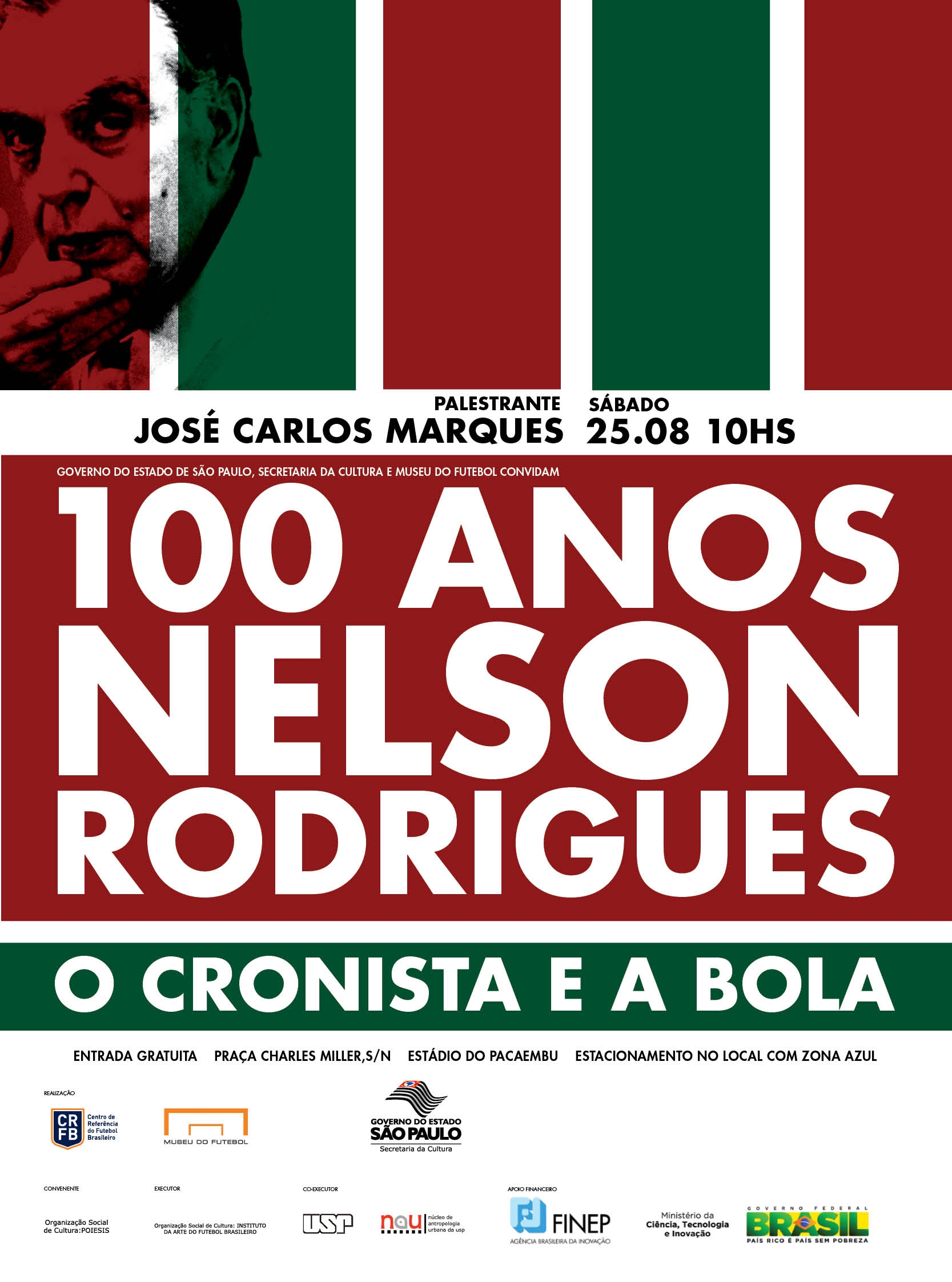 Meu personagem da semana é Nelson Rodrigues, o cronista da vida como ela é e do sobrenatural de almeida: 100 anos nesta semana. No sábado, dia 25/08/12, o Museu do Futebol de SP promove a palestra “Nelson Rodrigues – O Cronista e A Bola“, a partir de 10h, com o  professor José Carlos Marques, autor do livro “O Futebol em Nelson Rodrigues”. Aqui, um bate-bola do site do Museu com o professor. A entrada da palestra é de graça!