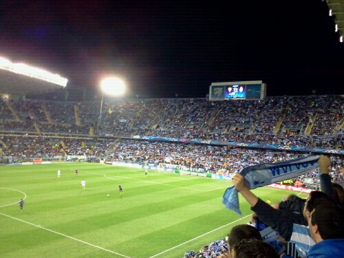 A torcida malaguista acreditou na sua “remontada” (virada), depois da do Barça. Não parou de apoiar. “Si, se puede” – gritavam os blanquiazules. 30 mil pessoas ao todo, incluindo um bom número de adeptos do Porto – e o atir Antonio Banderas, malaguista fanático.