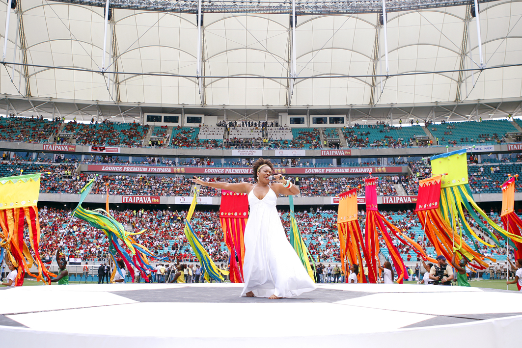 - Margareth Menezes, no 1º show da Itaipava Arena Fonte Nova. FOTOS: Agência BaPress – publicadas no Portal da Copa http://www.copa2014.gov.br/