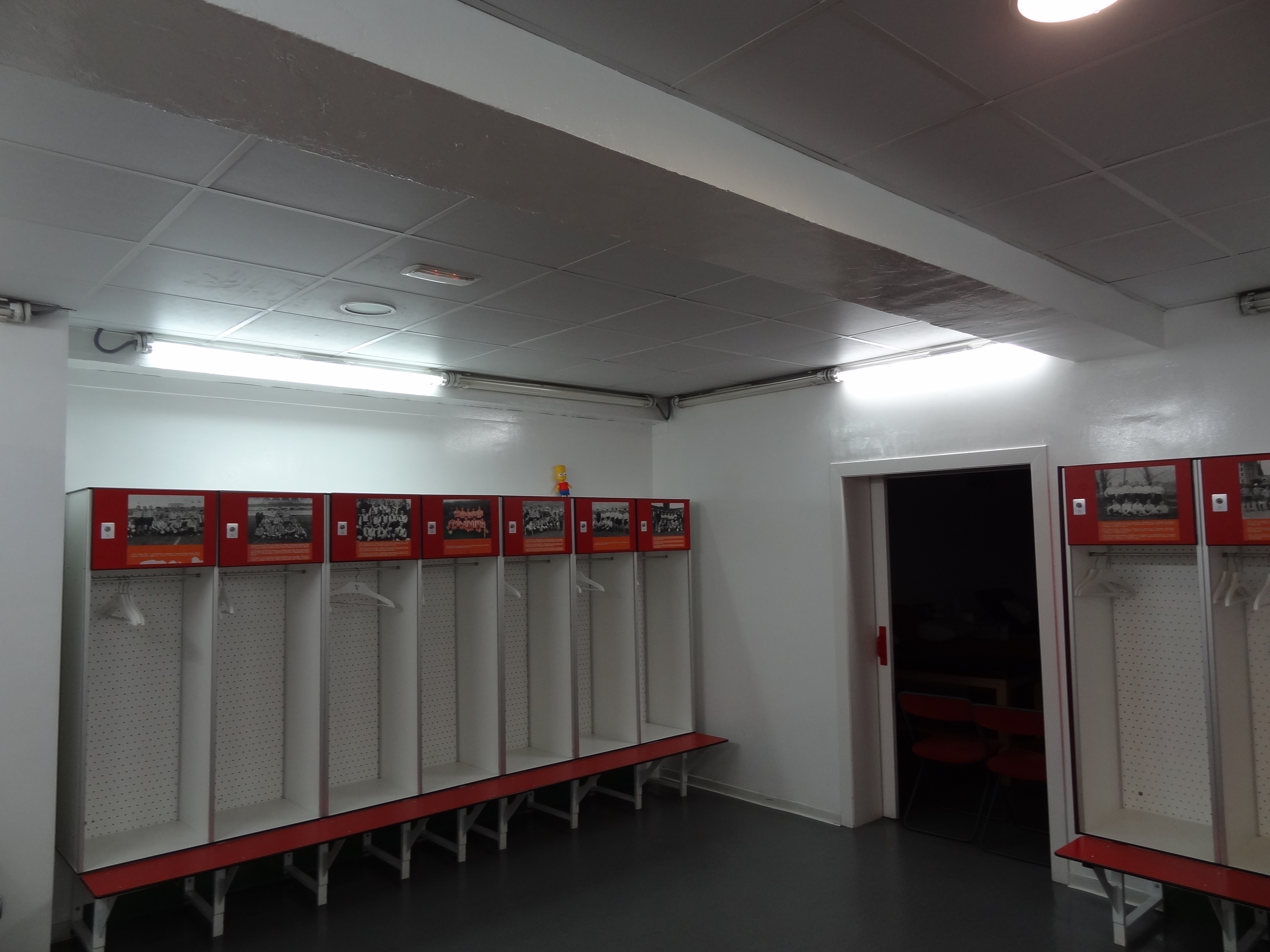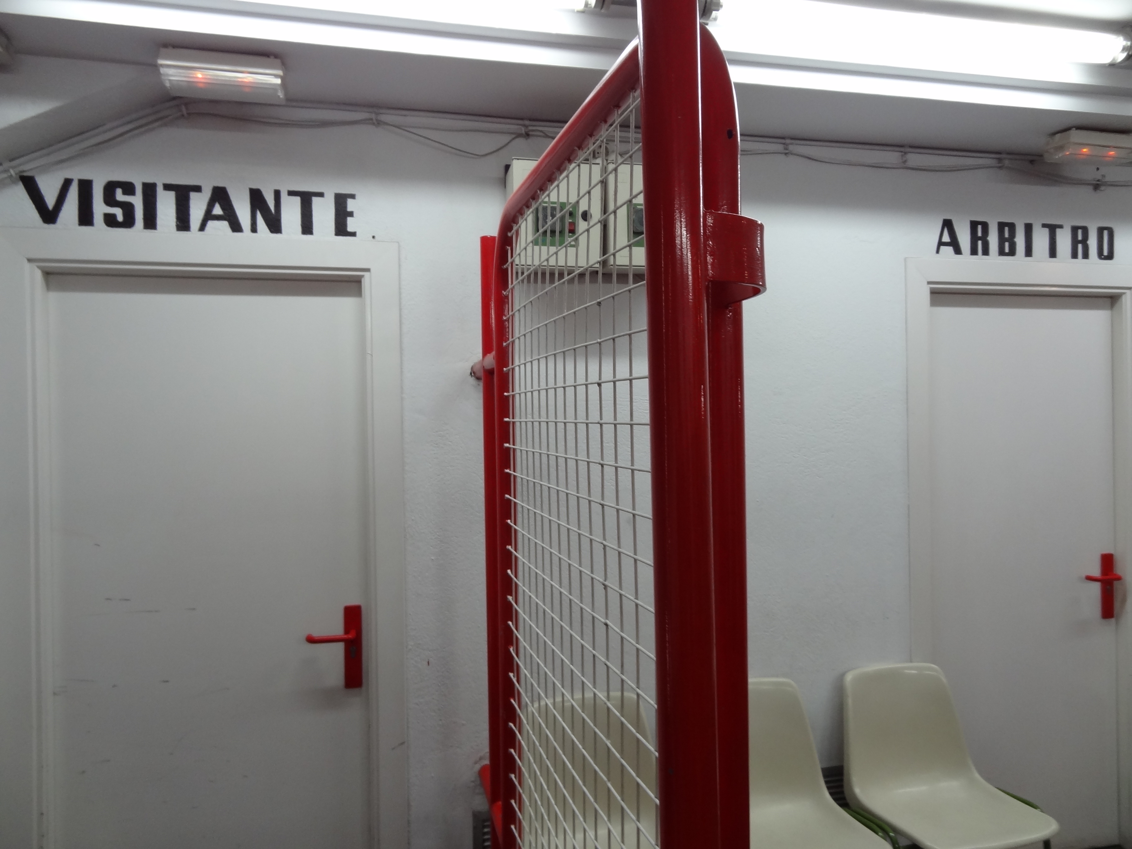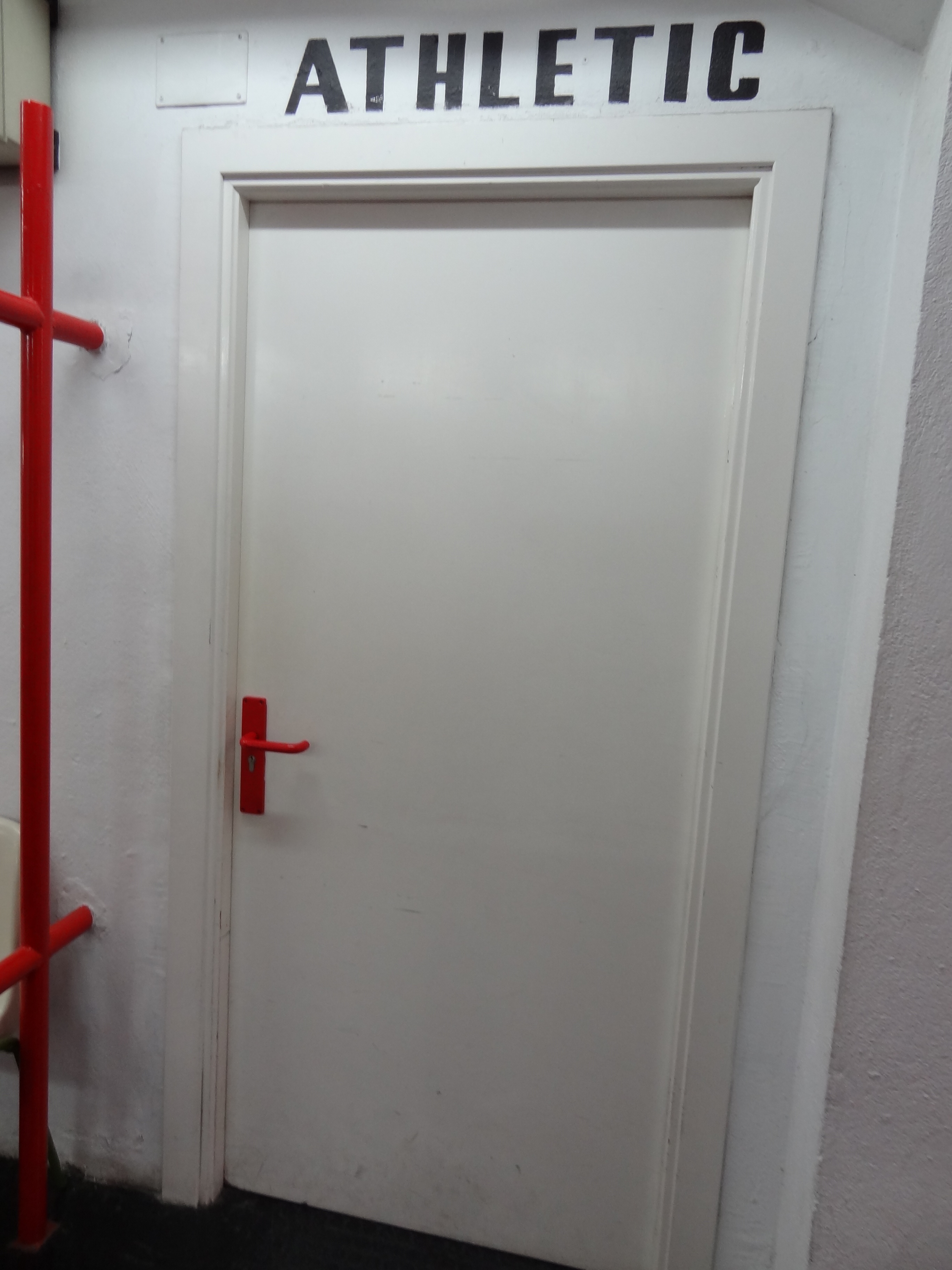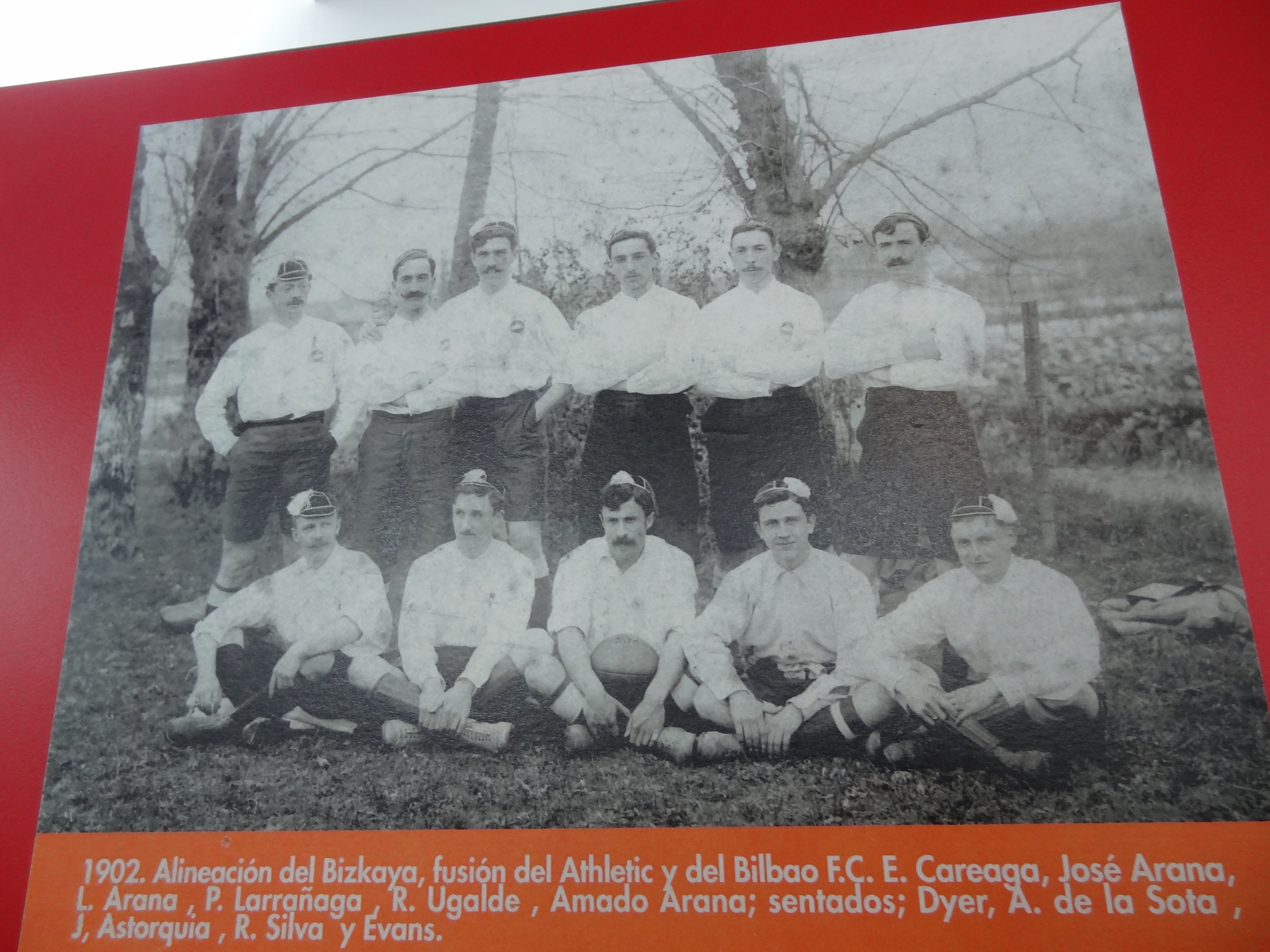 BILBAO – O blog Fut Pop Clube teve a oportunidade e o prazer de conhecer o Museo Athletic Club e fazer uma visita guiada (pela simpática Aida) ao estádio que verá sua última partida neste ano em que completa o centenário. Custa 7 euros para adultos não-sócios. Não é permitido tirar fotos no museu, mas ele tem uma interessante coleção de carteiras de sócios (alguns, por uma vida inteira), ingressos, cartazes/postêres e programas de jogos – como o amistoso de 80 anos do estádio, contra o Flamengo, e do centenário do Athleti, contra a seleção brasileira, pouco antes da Copa de 98. Também há uma camisa do Flamengo, de 1993 (Umbro). Claro, as taças do clube. Uma linha do tempo da história do clube e de San Mamés. Um díptico – um imenso painel – com os jogadores de 1898 a 2013, como se fosse aquela tradiciola pose do elenco para a posteridade. E é.
