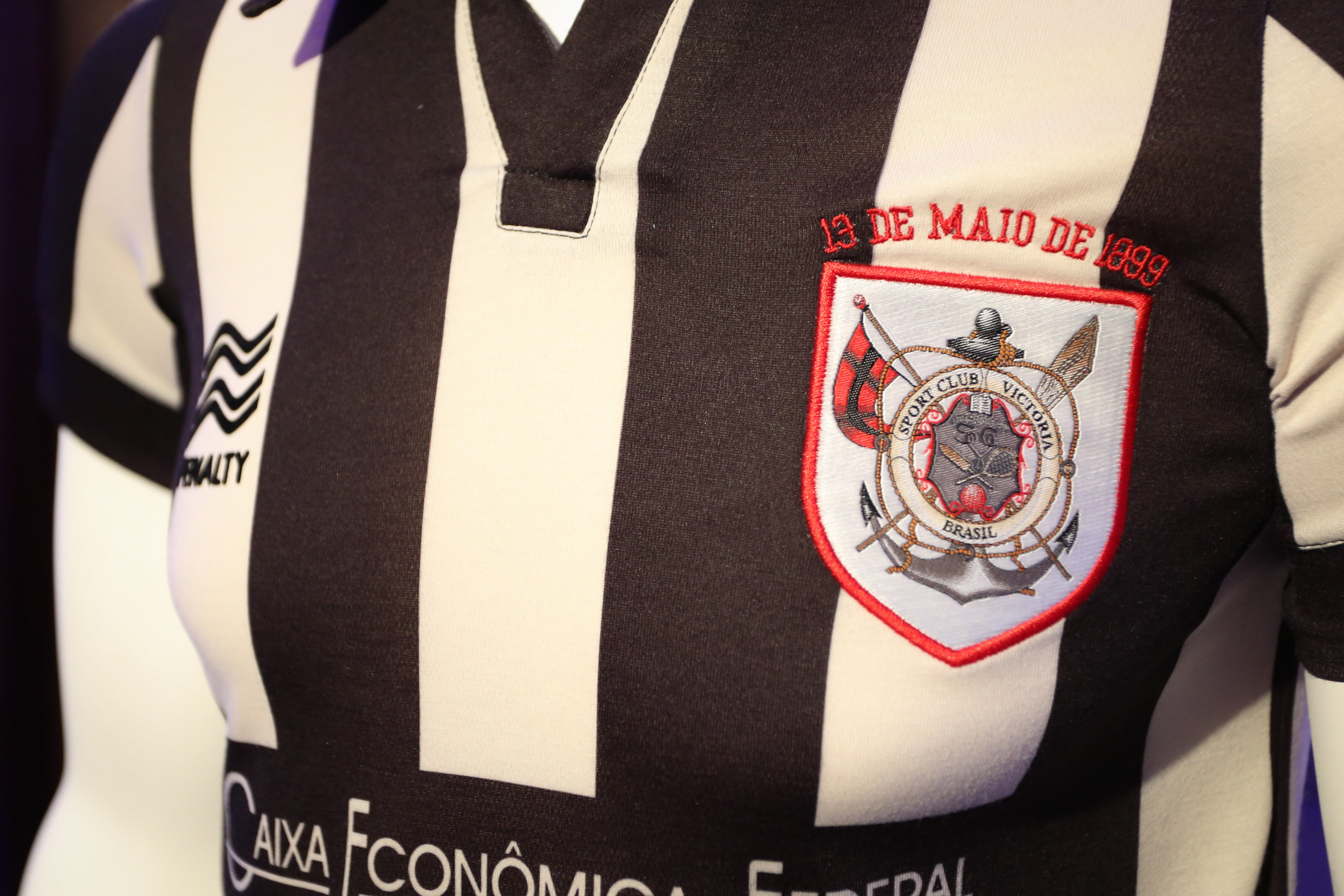A camisa P&B do Vitória, lançada pela Penalty no Dia Nacional do Futebol, vai ser o terceiro uniforme do Leão da Barra, informa o site oficial do clube. Que explica a origem: o Club de Cricket Victória foi fundado em 1899. Em 1902, adotou o futebol virou Sport Club Victória e por um tempo usou a camisa listrada em P&B, antes de adotar o uniforme rubro-negro. No ano passado, o Vitória chegou a usar uma linda camisa preto e branca, como parte da campanha Meu Sangue é Rubro-Negro, premiada em Cannes. Confira os detalhes da camisa, como o distintivo retrô – e como em outras camisas da coleção, as marcas dos patrocinadores e da fornecedora também são “vintage”,