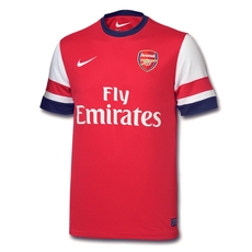 Adult Home Shirt, Nike Kit, short sleeved, The Arsenal FC Replica Jersey. Game Ready Breathable. 2012/13 season. Material is Dri-fit farbic 100% polyester, machine wash. colour with red with white sleeves with red and blue hoop details on the sleeve. Fly Emirates lettering in white. Rib crew neck. Sizes available S-XXL