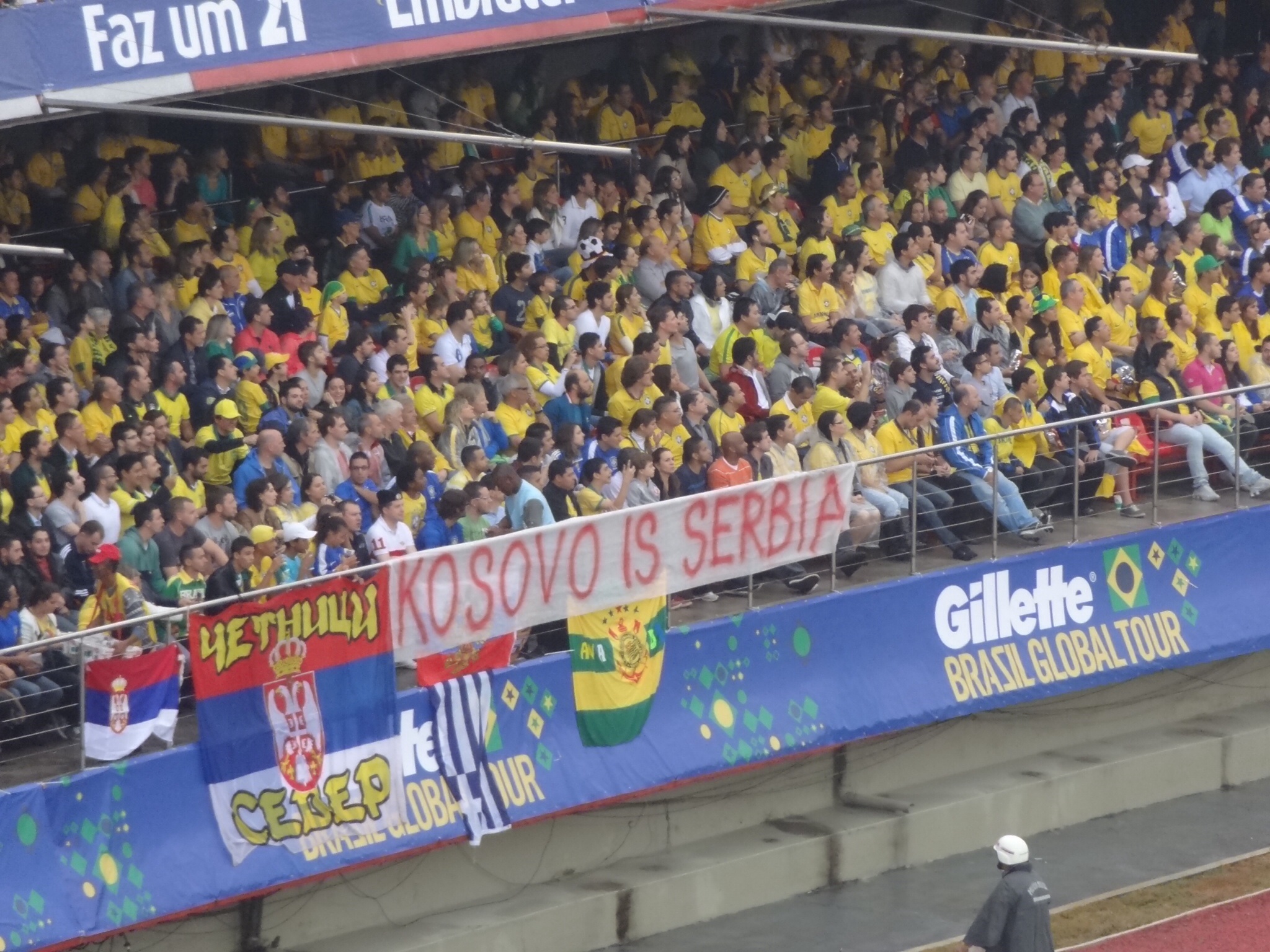 Mas às vezes basta a Seleção marcar um gol para rolar aquele chatinho”eu  / sou brasileiro/  com muito orgulho / com muito amor”.