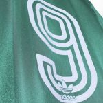 Na vitória contra o Bahia, no último fim de semana, pela rodada #32 do BR-2014, os jogadores do Palmeiras entraram no gramado vestindo uma camisa retrô (re)lançada pela Adidas. Verde escuro, gola V, número 9 com o tipo padrão da Adidas na época, logo do fabricante, mas sem as tradicionais três listras. Uma camisa muito semelhante à usada na segunda metade dos anos 80, pelo que pude perceber no livro do Paulo Gini e do Rodolfo Rodrigues, “A história das camisas dos 12 maiores times do Brasil” (a original tinha um banner gigante do patrocinador, Agip; nas ruas e arquibancadas, de vez quem quando se vê um alviverde com essa camisa clássica). Veja os detalhes da camiseta retrô, lançada pela Adidas em 2014 (clique em qualquer imagem para abrir a galeria).