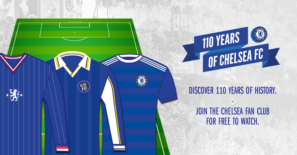 No site dos Blues, o ‘campinho’ interativo da imagem acima permite ao torcedor cadastrado no fã-clube oficial ver vídeos sobre os 110 anos de história do clube.