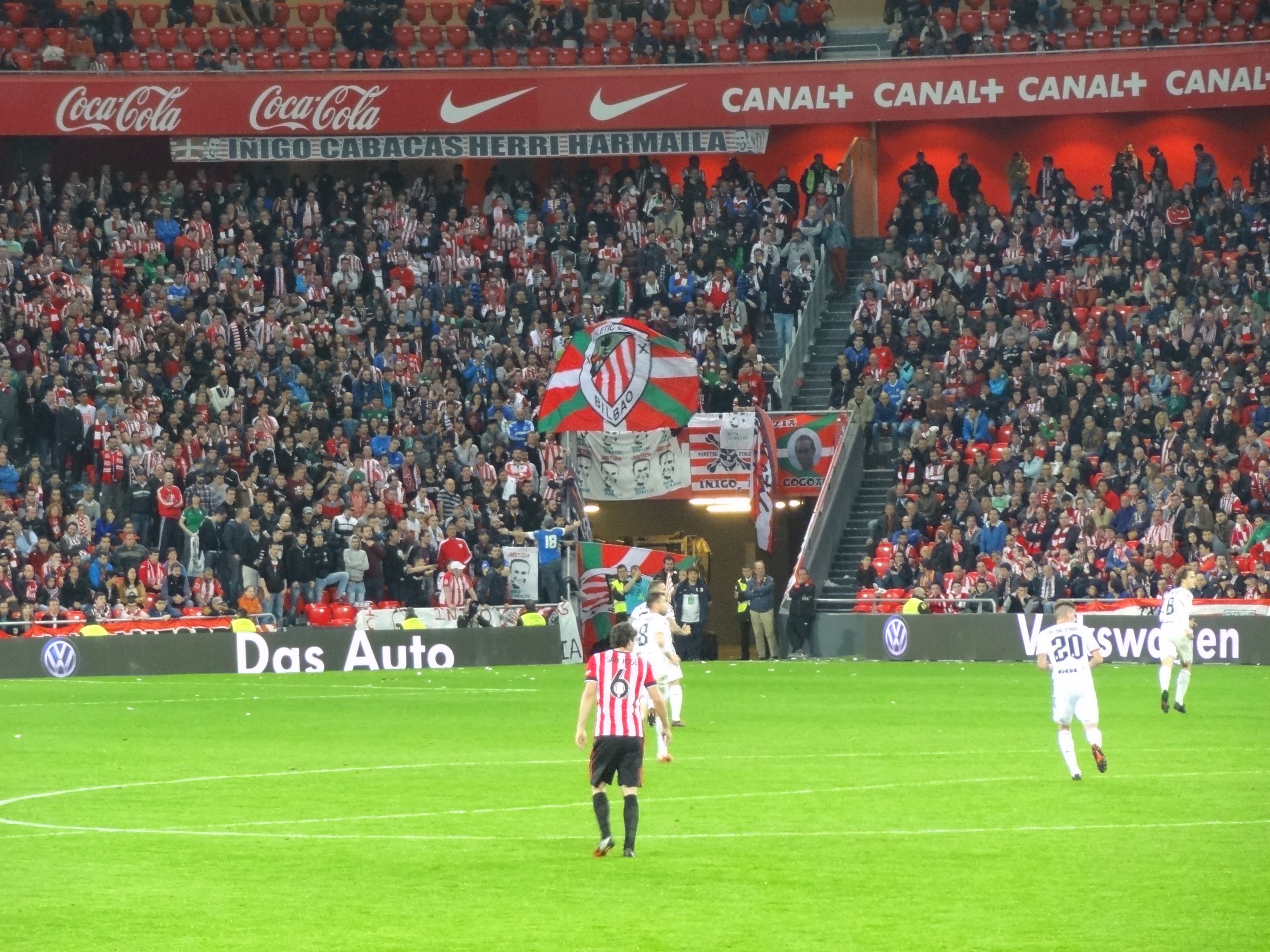 A torcida do Athletic pressiona bastante o juiz e é um pouco impaciente com o time. Quem comanda os gritos de apoio – pra variar – são os dois grupos de jovens torcedores que se acomodam atrás dos gols, perto do córner. Por sinal, nesta partida contra o Valencia, esses fãs fizeram um protesto contra o caso de um torcedor morto por uma bala de borracha, alguns anos atrás.