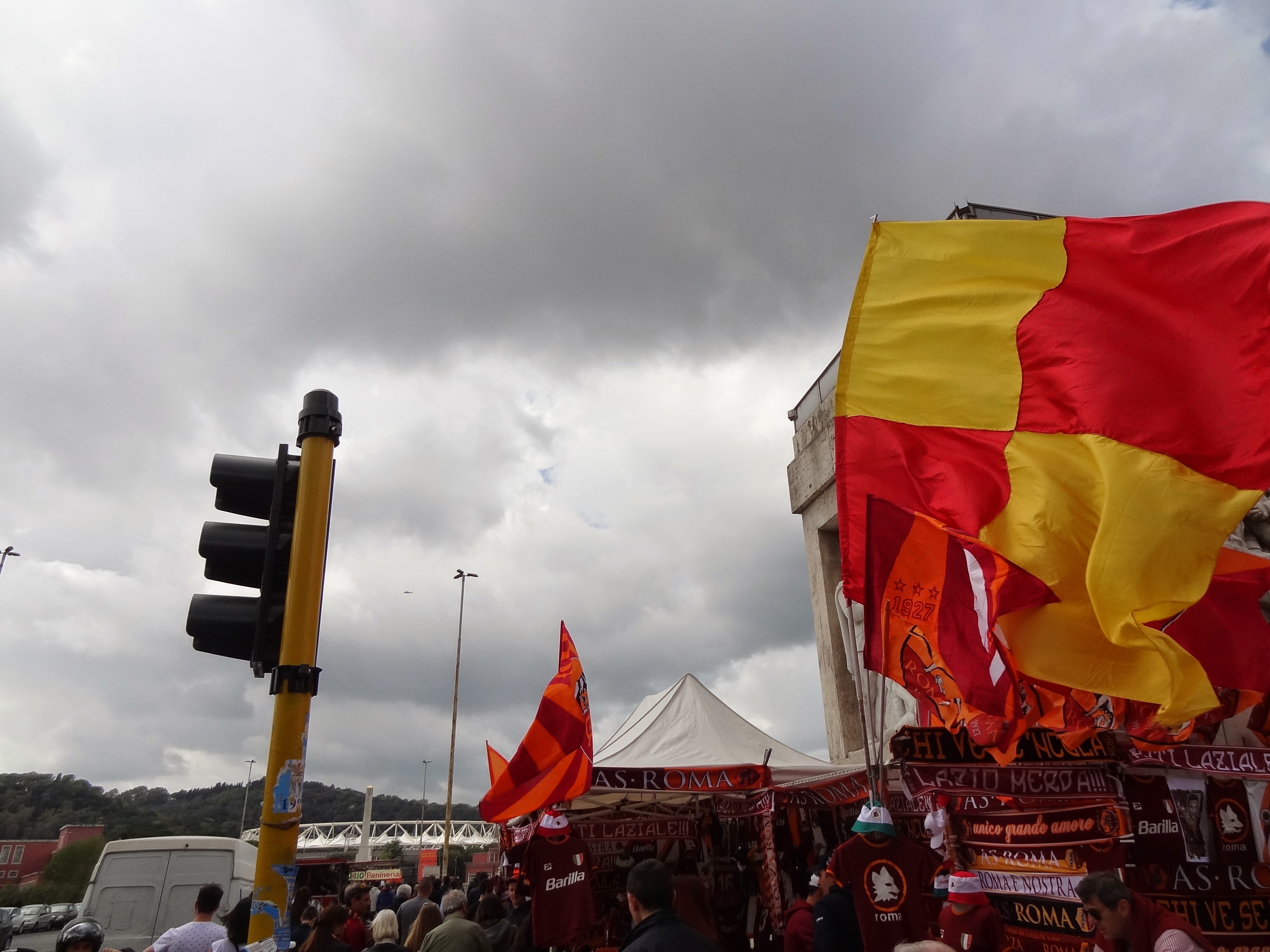 A torcida mais radical da Roma tinha cantado algumas coisas bem feias contra um torcedor morto. Não passei por tantas barreiras policiais revistando torcedores nem quando fui à Bombonera! O clima estava pesado. E a torcida me pareceu um tanto sem paciência com alguns jogadores. Normal!