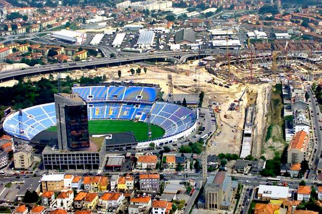 Olha como era o Estádio das Antas, que ficava ao lado de onde hoje é estádio dos Dragões (e na foto abaixo, já estava em construção).