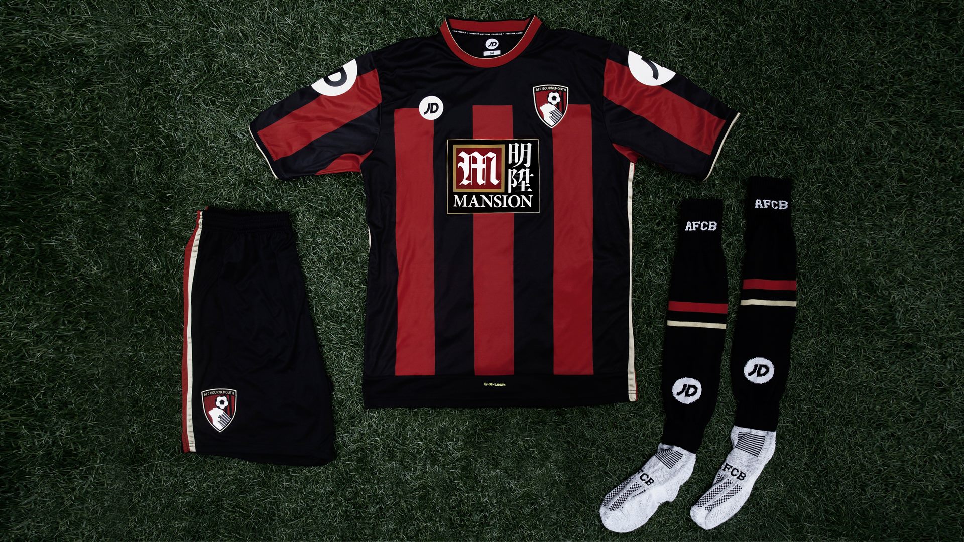 - O caçula Bournemouth usa uniformes com a marca da loja JD Sports.