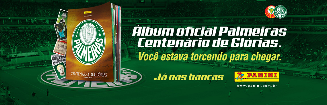 Saiu um álbum de figurinhas do Verdão: Palmeiras – Centenário de Glórias é um lançamento da Panini. São ao todo 400 cromos adesivos (100 metalizados ou em tecido) pra preencher o álbum de 66 páginas.