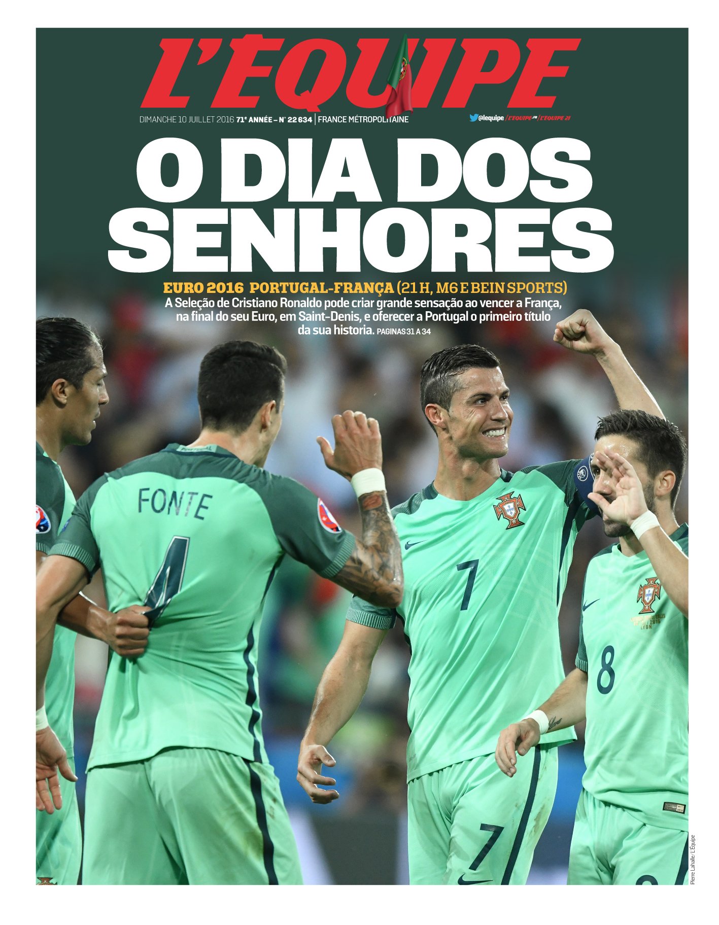 Olha que bacana: o L’Équipe fez também uma versão em português para a grande comunidade lusa na França. Um milhão de portugueses vivem na França. Quase dez por cento dos habitantes de Portugal, que tem 11 milhões. Confira.
