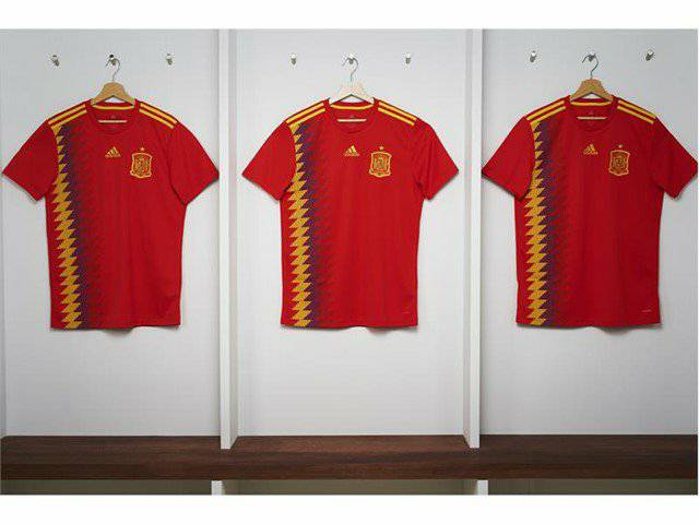 A hermosa camiseta da Espanha é uma referência a outro desenho clássico, o da La Roja no Mundial de 1994, nos EUA. A Fúria de jogadores como Luis Enrique, Guardiola, Salinas, Lopetegui, Abelardo, Sergi e o goleiro Zubizarreta só parou nos italianos, nas quartas. A bela camisa vermelha tinha um grafismo composto de diamantes, que segundo o fabricante, representam a velocidade, energia e estilo de jogo da Fúria.