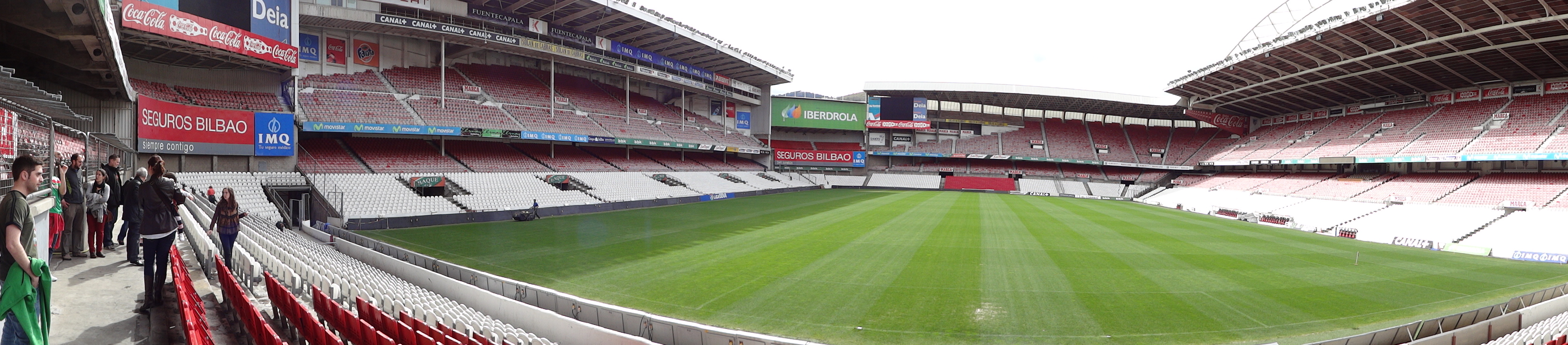 Estádio: o novo San Mamés, erguido ao lado do local onde estava a velha “catedral”, está todo pronto agora. As fotos que mostram a impactante nova fachada são do rolê do blog por Bilbao em maio de 2014. Capacidade: 53.332 torcedores. Média de público na última liga espanhola: 32.850, a 48ª da Europa. Essa média deve subir agora, com o estádio todo pronto.