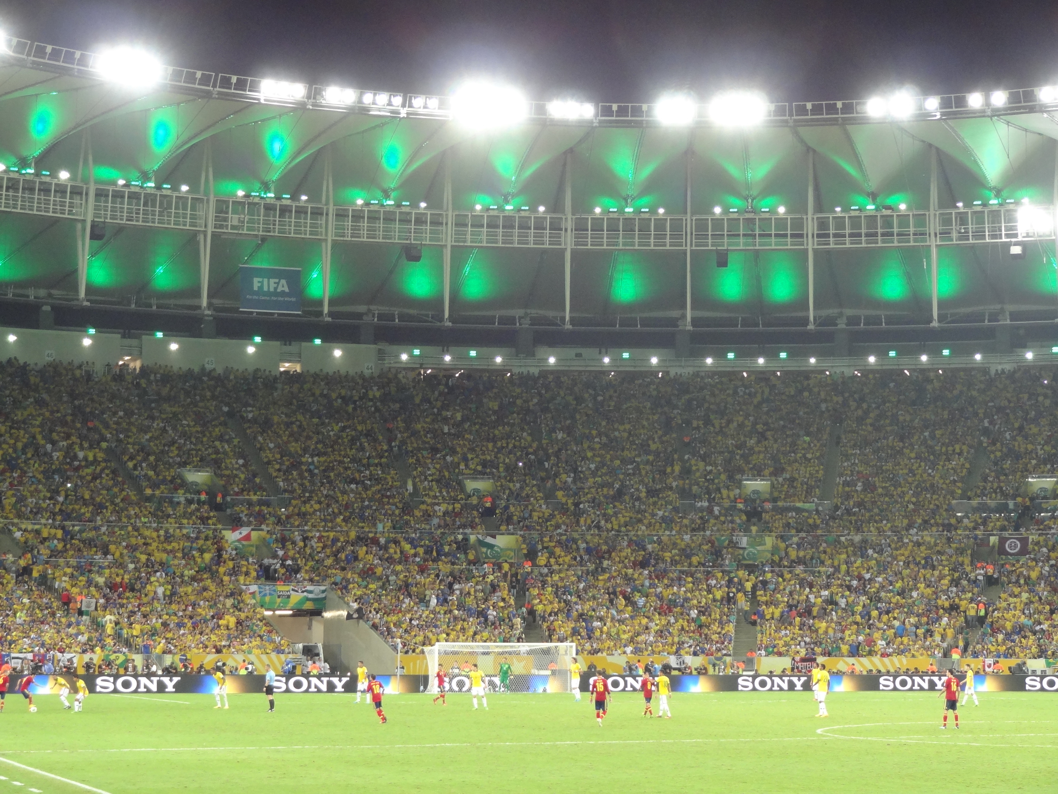 E como o novo formato do Maracanã lembra o de uma tribuna única, do gramado ao ponto mais alto, a torcida brasileira deu a impressão de formar uma muralha amarela, verde e amarela. Muralha essa atrás do gol da rua Professor Eurico Rabelo que puxou o hino nacional no meio do segundo tempo. Isso, depois do hino normal, antes do jogo. Normal? Emocionante.