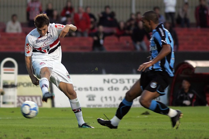 3×1, fora um pênalti perdido. O placar de São Paulo x Grêmio é um tanto enganoso, não reflete bem o que foi o jogo. Bastante desfalcado, o tricolor gaúcho saiu na frente (gol de Hugo, ex-São Paulo; por que será que jogadores marcam tantos gols contra seus ex-times, hein?), tomou o gol de empate, viu Rogério Ceni bater pênalti como tiro de meta e carimbar a trave, e dominou boa parte do jogo. O Grêmio perdeu muitas chances de ampliar o placar. Em parte graças à má pontaria, em parte por causa de importantes defesas de Rogério Ceni – que se perdeu mais um pênalti, o quarto em 2010, foi decisivo debaixo da trave. Mas o nome do jogo foi Dagoberto, que pela primeira vez marcou três gols numa só partida pelo São Paulo. Com uma grande ajuda de Marlos no primeiro e no terceiro, é verdade. Dagol, muitas vezes criticado pela pontaria, arrebentou hoje. Dagoberto 3×1 Grêmio (veja os gols aqui).