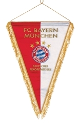 Imagens das flâmulas: lojas virtuais do Lyon e do Bayern.